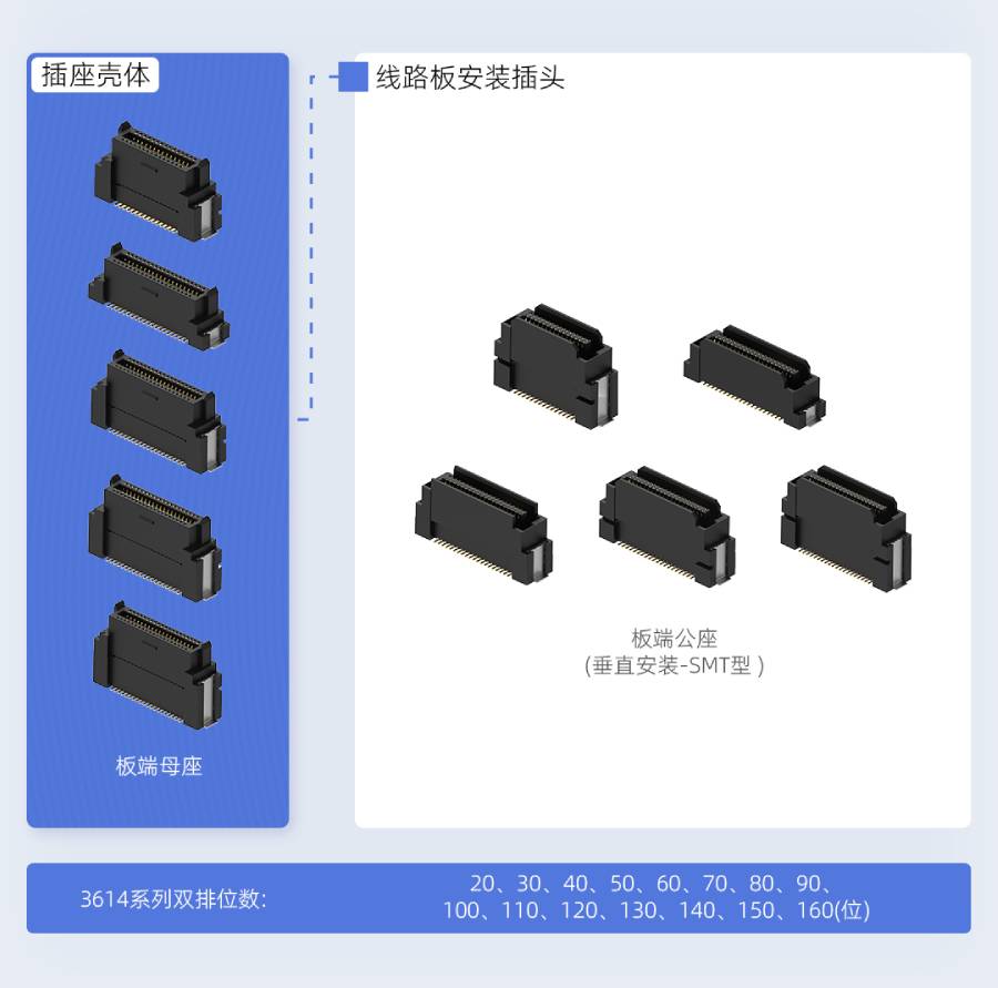 3614系列精密板對板連接器嚴格遵循 EIA-364 等行業標準進行設計、生產和測試,確保連接器的每一款型號都能達到國際一流的品質水平。我們致力于為客戶提供高性能、高可靠性的連接解決方案,助力每一位客戶在競爭激烈的市場中脫穎而出。